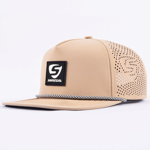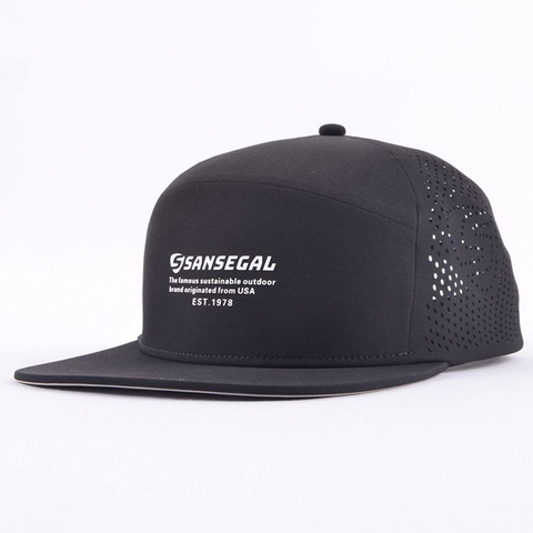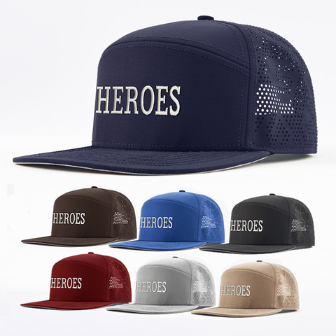 Oem Custom Heren 7 Panel Flat Bill Golf Getailleerde Snapback Hoeden Groothandel Custom Logo Laser Cut Hole Waterdichte Sport Snapback Cap